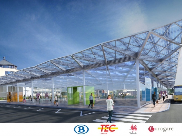 Located at the very heart of Wallonia’s capital, the existing bus station is saturated, while TEC [public transport authority] traffic will continue to increase. The rail station, which is located alongside, has been left in an unfinished state since the late 1990s. The public bodies involved (SNCB through Eurogare, Wallonia Region, the TEC and the city of Namur) seek to provide a more secure and attractive bus station. The project put forward by Ney & Partners will erect the future bus station on top of the roof of the existing rail station, which will be renovated and completed at the same time. With much easier transfers between train and bus, it's effectively a multimodal interchange that will see the light of day. Buses will access it over a ramp and cable-stayed bridge in order to blend as nicely as possible into the environment. In conjunction with this work, the layout of Place Léopold, which is located at the foot of the bus lanes, will be redesigned.